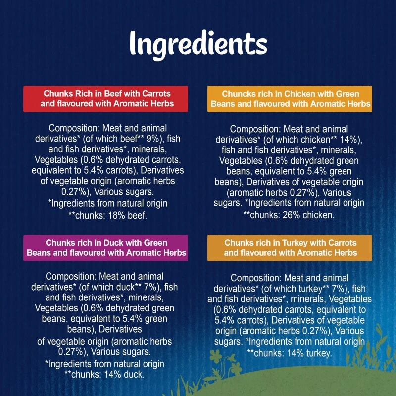 FELIX Naturally Delicious with tasty chunks and vegetables, flavoured with aromatic herbs, are perfectly steam cooked chunks in a tasty jelly, your cat will love! Naturally they look, smell and taste delicious, just like food you might have cooked yourself! Each chunk is 100% steam cooked, at just the right temperature and served in an irresistibly tasty jelly.