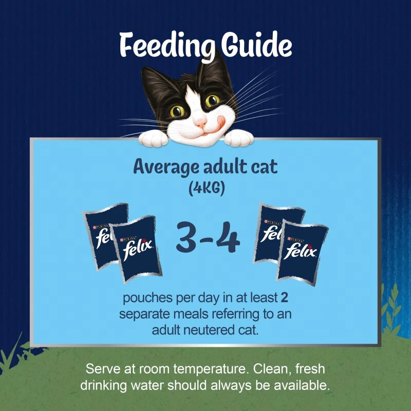 Made with selected natural ingredients, FELIX Naturally Delicious chunks are packed with healthy goodness, no added cereals and will satisfy 100% of your cat’s daily needs, when served according to the feeding guidelines.