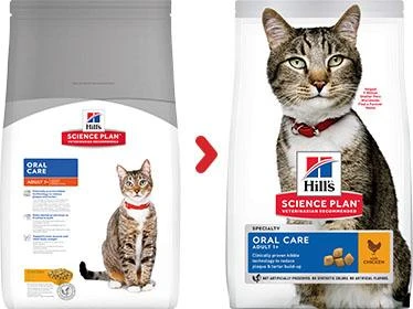 Hill’sâ„¢ Science Planâ„¢ Feline Adult Oral Care Chicken is clinically proven to reduce plaque and tartar. With antioxidants and advanced oral care technology. Suitable for everyday feeding.