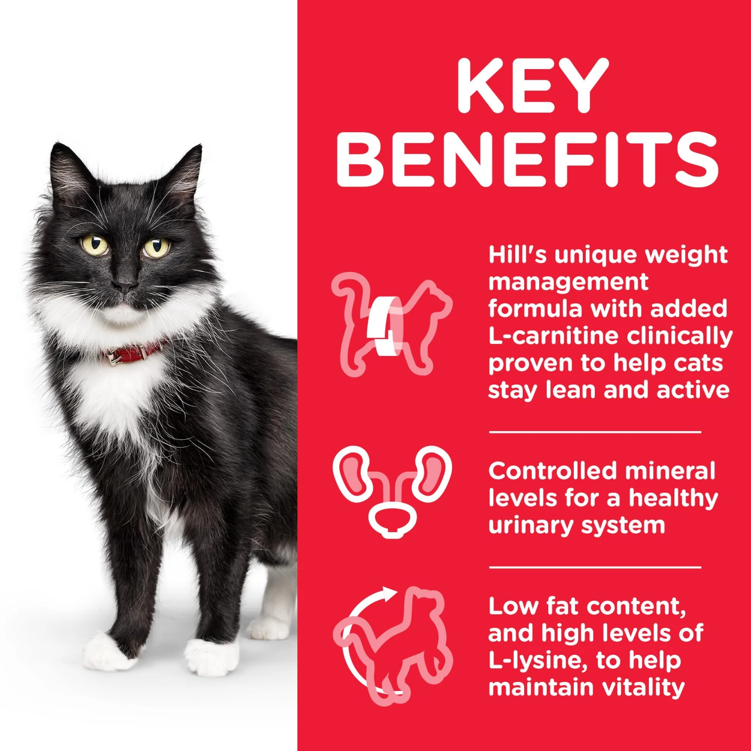 HILL’S SCIENCE PLAN Sterilised Cat Mature Adult dry cat food has a unique Weight Management Formula to help keen sterilised cats lean. Made with high quality, easy-to-digest ingredients.With added L-carnitine clinically proven to help cats stay lean & active/li>Controlled levels of minerals for a healthy urinary systemLow fat content, and high levels of L-lysine, to help maintain vitality.