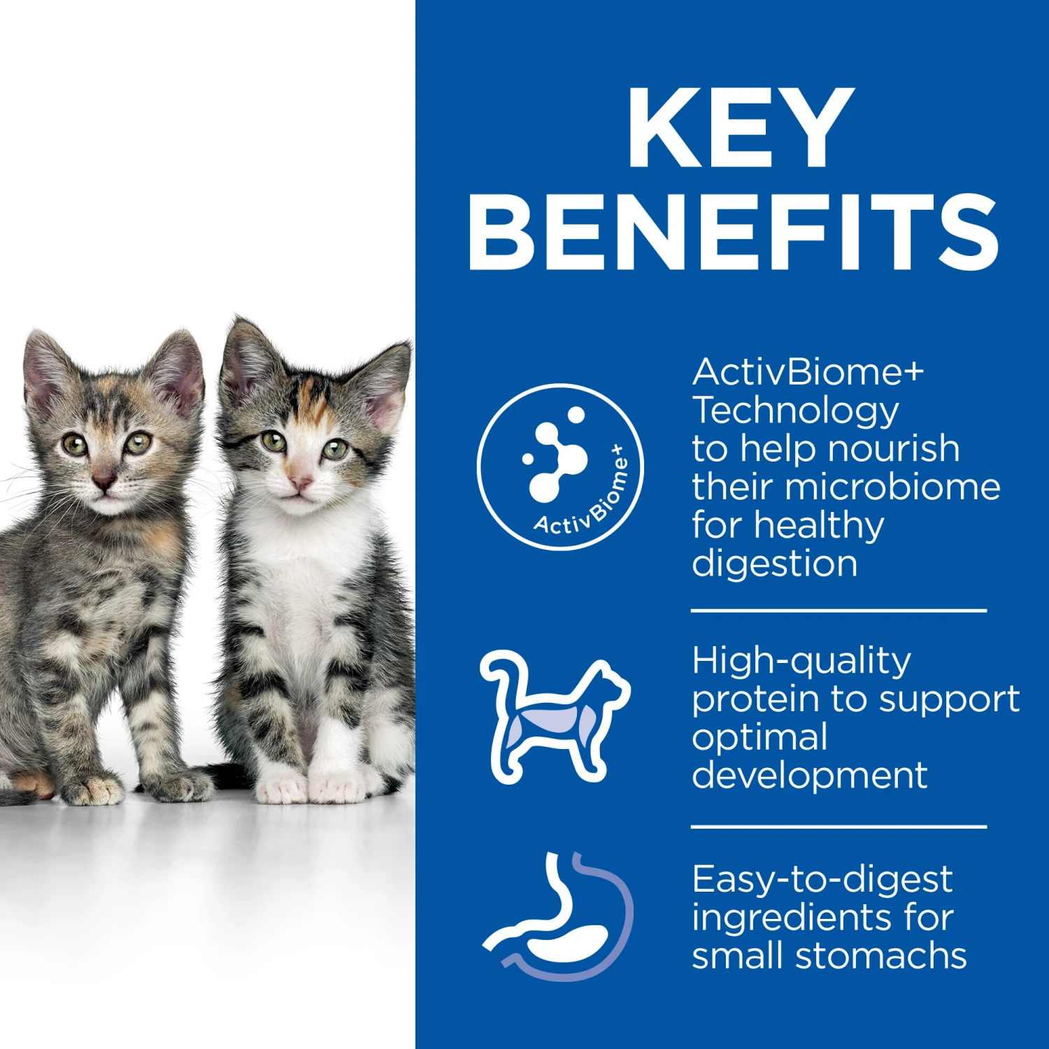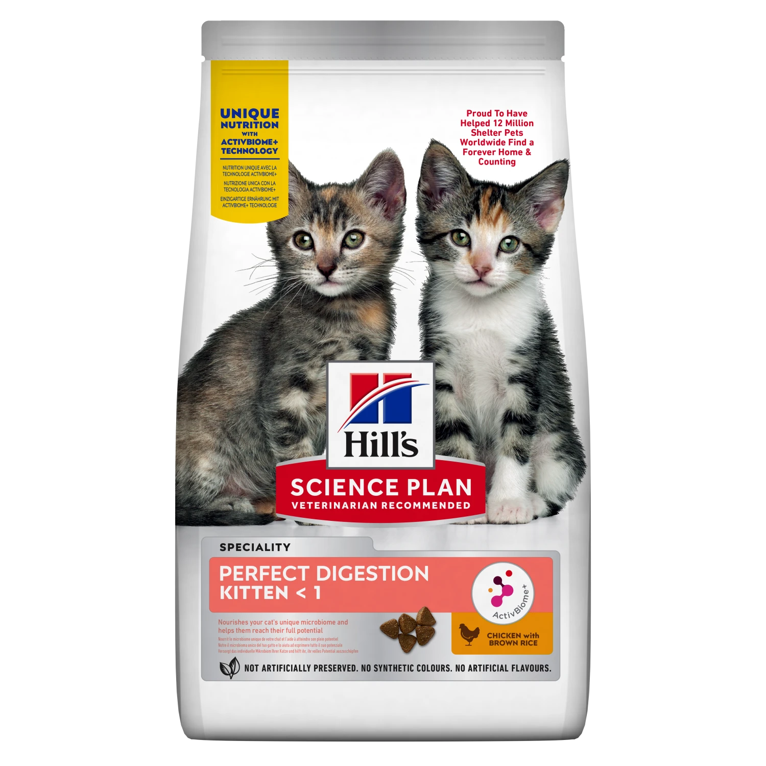 Hill’s Science Plan Perfect Digestion Kitten food with Chicken & Brown Rice Contains ActivBiome+, a Hill’s exclusive blend of prebiotics to nourish your cat’s unique microbiome and help them reach their full potential.