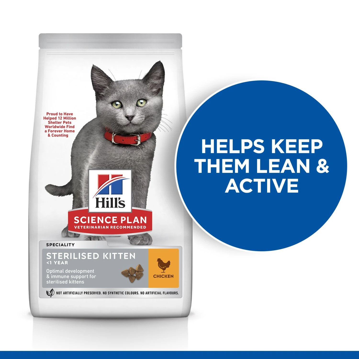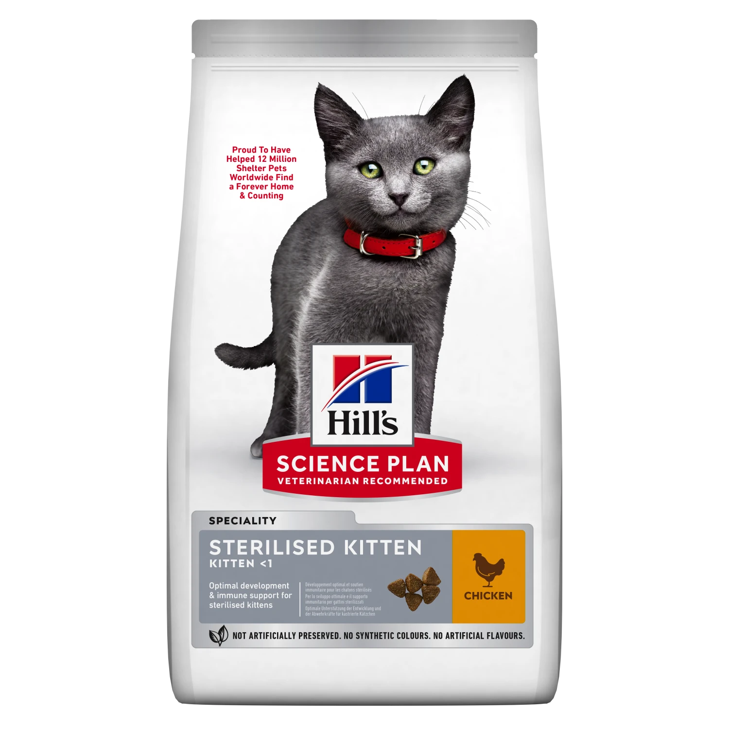Hill’s Science Plan Sterilised Kitten cat food provides delicious, complete and balanced nutrition for the optimal development & immune support of sterilised kittens, so they get the best start in life & grow to their full potential.