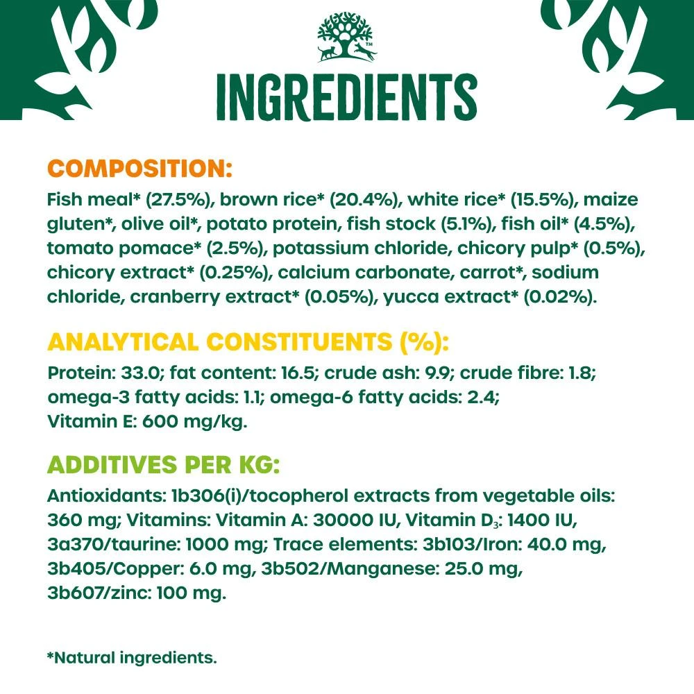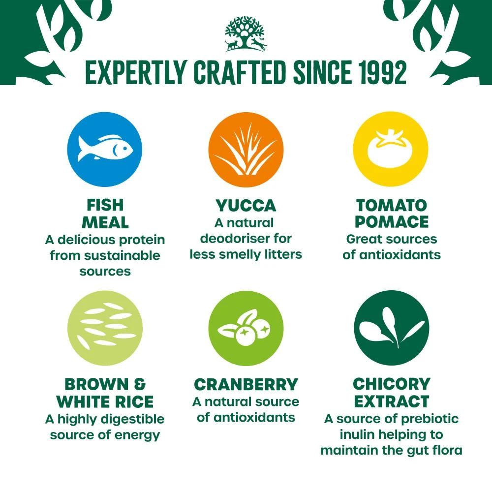 James Wellbeloved Fish Adult is formulated to meet the protein and energy requirements of the adult cat aged 1 to 7 and includes a balance of soluble and insoluble fibres to support the digestive system. We also add chicory extract which is a natural prebiotic. Omega fatty acids promote a glossy coat and Yucca extract is included to reduce stool odour.