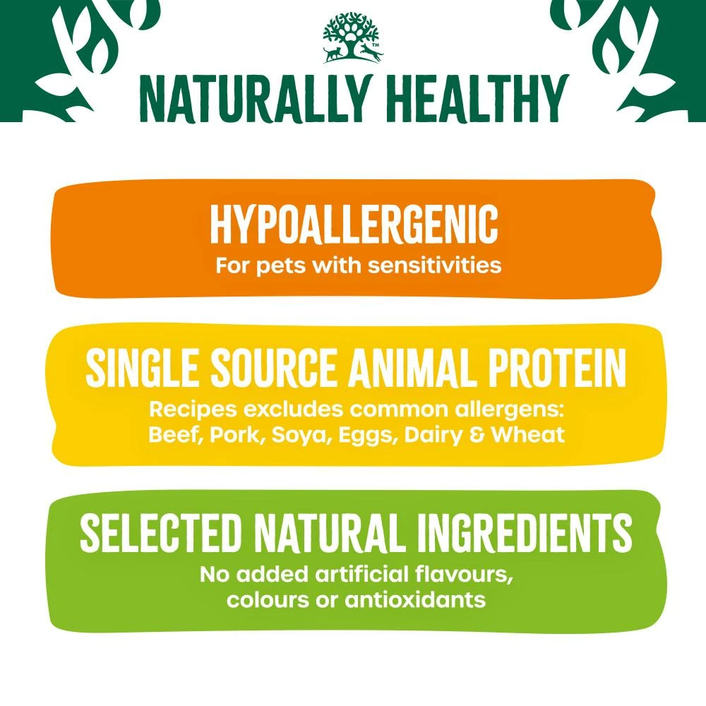- We exclude the most common causes of adverse food reaction – no beef, pork, soya, wheat, eggs or dairy products.