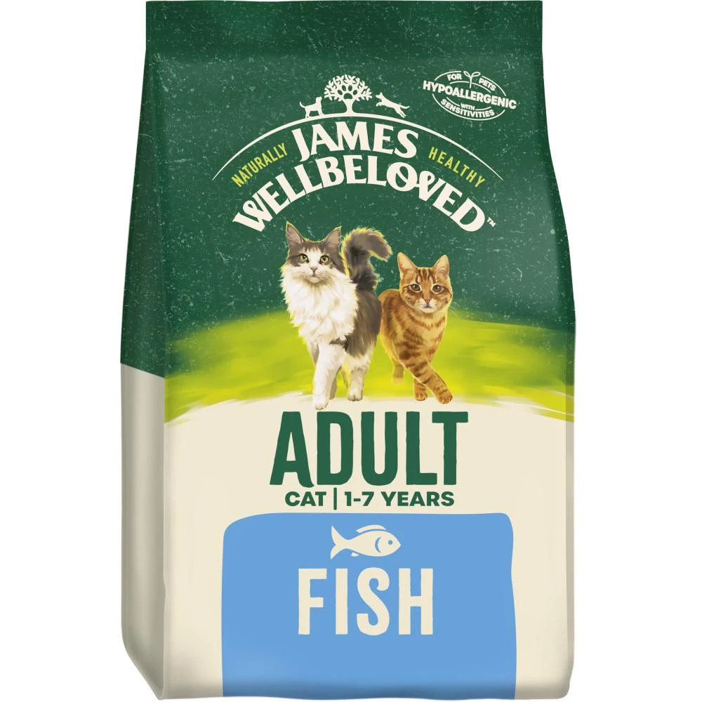 James Wellbeloved Fish Adult is formulated to meet the protein and energy requirements of the adult cat aged 1 to 7 and includes a balance of soluble and insoluble fibres to support the digestive system. We also add chicory extract which is a natural prebiotic. Omega fatty acids promote a glossy coat and Yucca extract is included to reduce stool odour.
