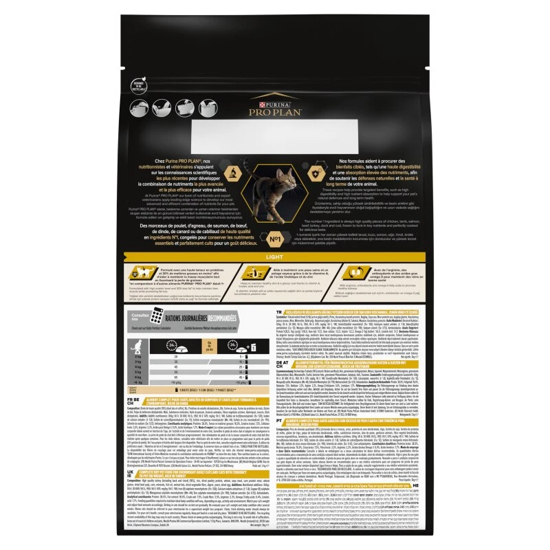 PURINA® PRO PLAN® LIGHT Adult 1+ Years with OPTILIGHT is a complete and balanced light Adult dry food for cats 1+ to help overweight cats and cats with a tendency to put on weight. It combines all essential nutrients with extra dietary fibre in a low-fat diet for cats without compromising on the taste they love.