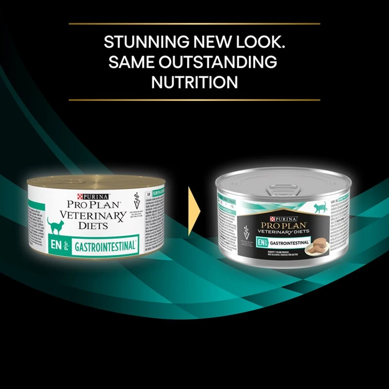 PURINA® PROPLAN® VETERINARY DIETS Feline EN St/Ox Gastrointestinal is a highly palatable complete veterinary diet to help manage gastrointestinal conditions in cats of all ages, including kittens. Intestinal disorders are frequently associated with poor digestion, which may worsen symptoms, so PPVD EN contains selected highly digestible ingredients to help reduce the workload on the compromised gut and to minimise the amount of nutrients that are not absorbed and remain in the gut. It also contains a limited number of protein sources to help minimise any food reactions. PPVD Feline EN contains prebiotics and omega-3 fatty acids to help promote a healthy intestinal environment.