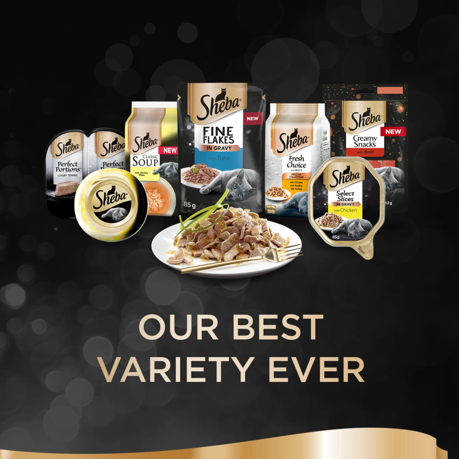 - Available in convenient 85g cat food pouches, Sheba Fine Flakes wet cat food with Poultry in jelly is gently prepared, with an exquisite flavour that cats love, time and again